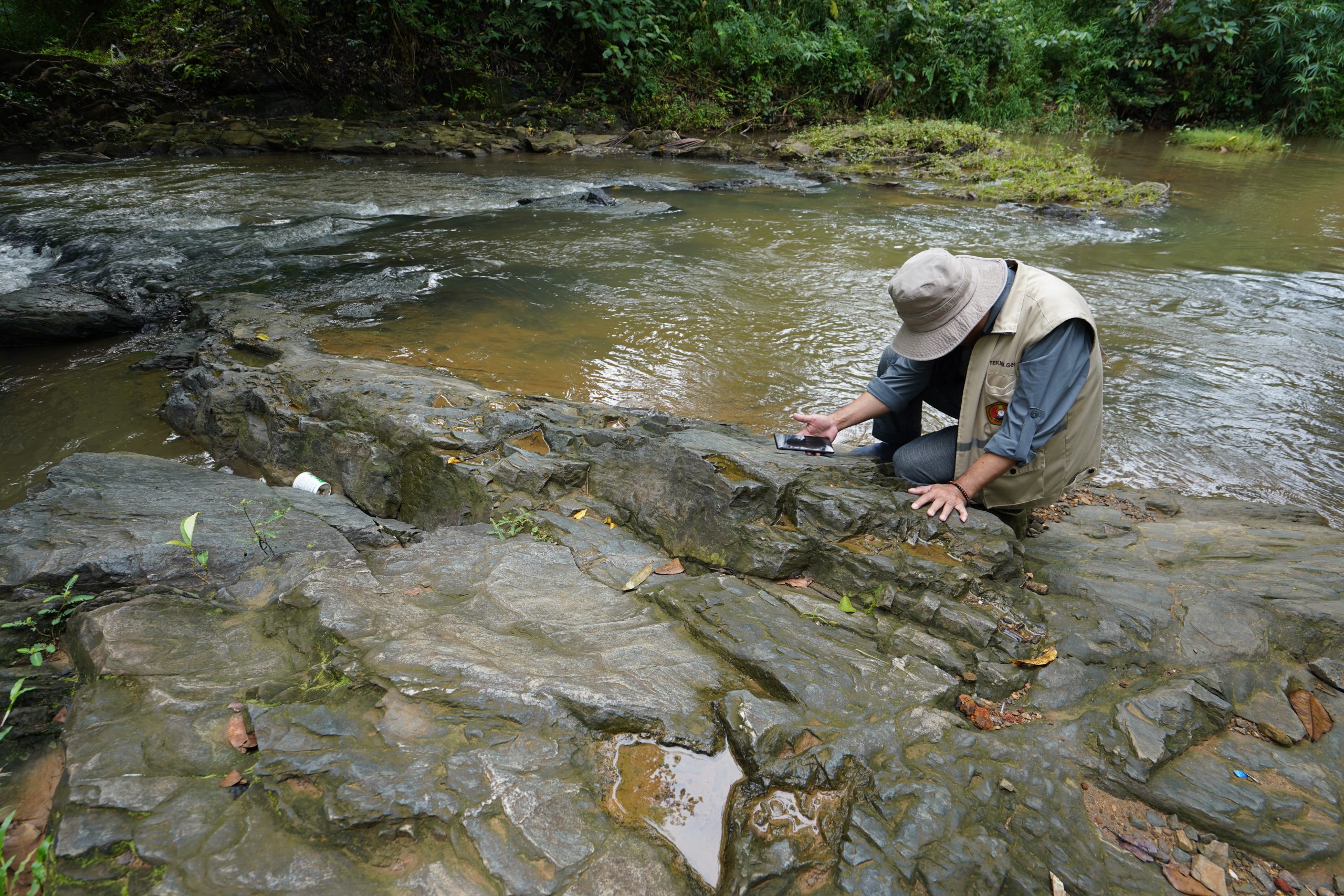 The Sei Kambang Schist Stone is in Awang Bangkal Village, Aranio District, Banjar Regency. It is 22 km from Banjarbaru City by motorcycle and car. Located in an Riam Kanan River, It was a result of earth events (geology) which is composed of baroisite schist rocks which are part of the Metamorphic Rock Group aged 180-182 million years ago (Middle Jurassic). Barroisite mineral is included in the category of rare minerals found in metamorphic rocks of the blueschist facies, based on research that metamorphic rocks from the Meratus Complex experience high-pressure epidote conditions of the blueschist facies before the peak metamorphism of the epidote-amphibolite facies, so that the metamorphic rocks of the blueschist facies are considered as a subduction zone fossil marker. This journey is the beginning of the Eastern Route “Inspiring Cruise Through Earth and People History”